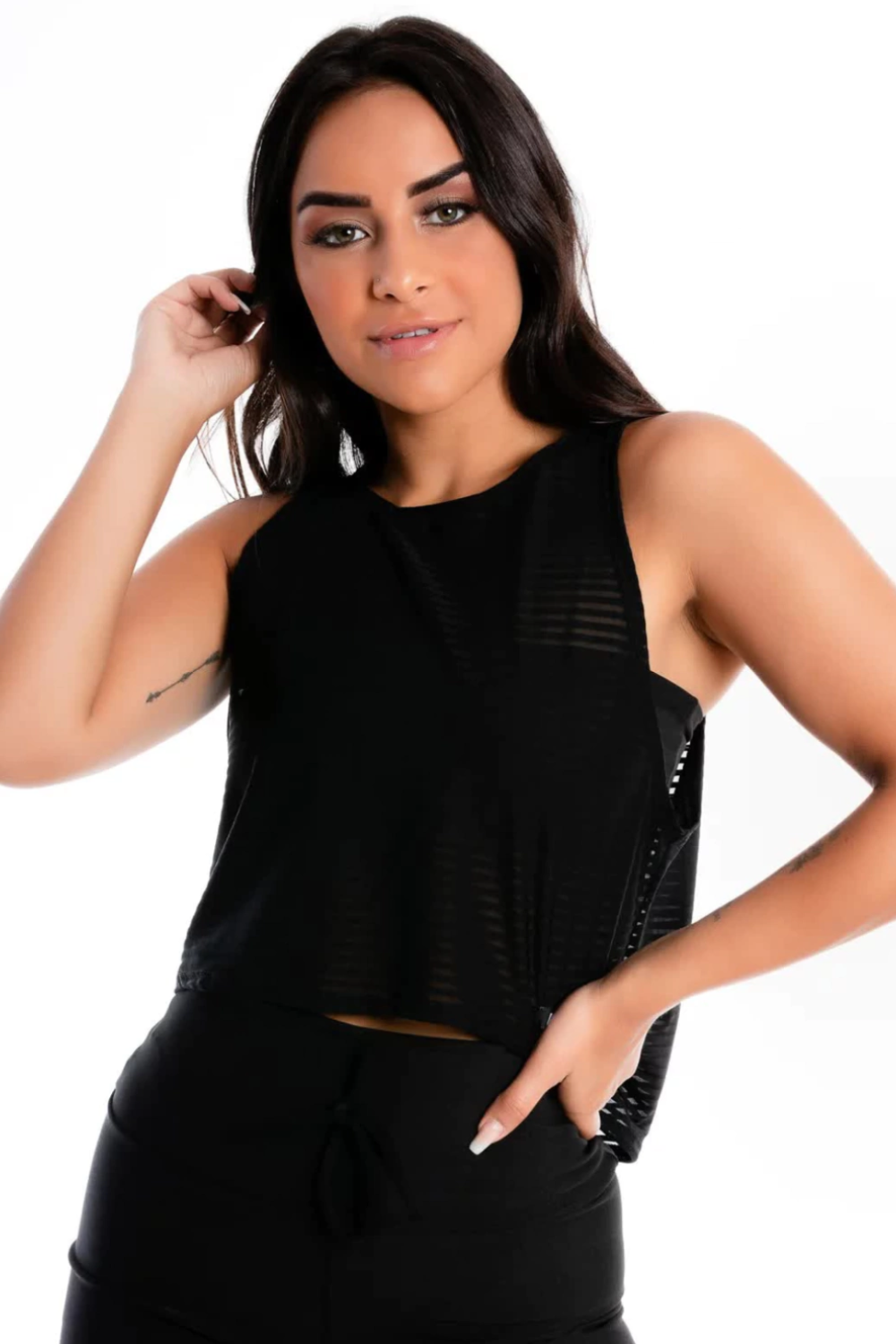 Blusa Feminina Com Tomara que Caia Transparencia Preta E Cropped