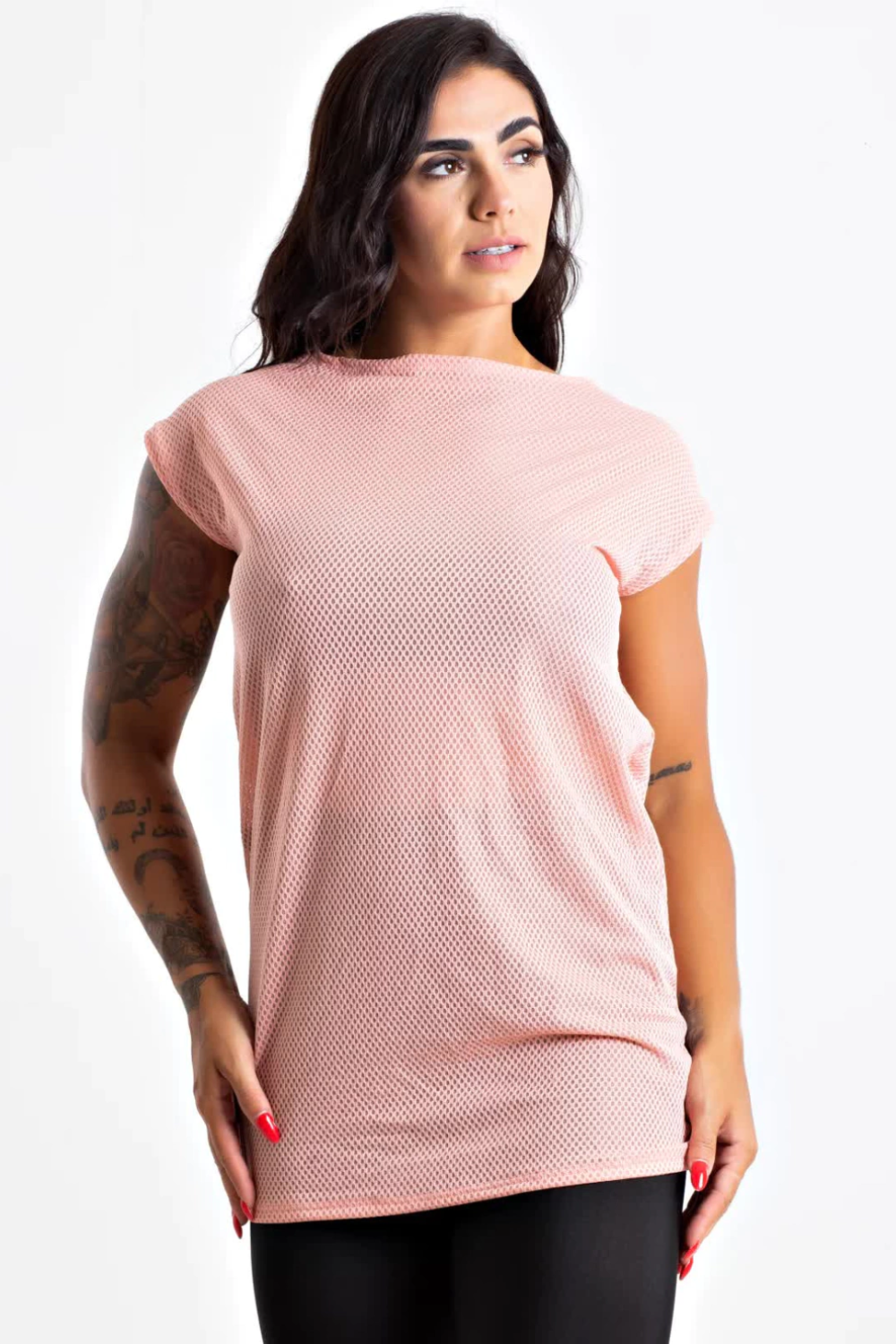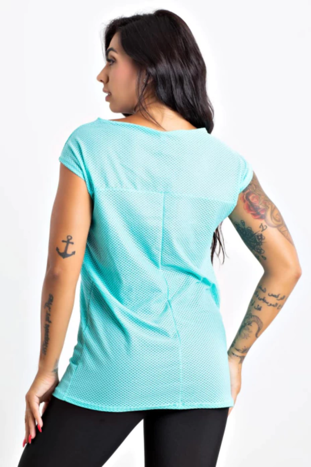 O tecido possui bastante elastano o que gera uma ótima elasticidade a peça.
