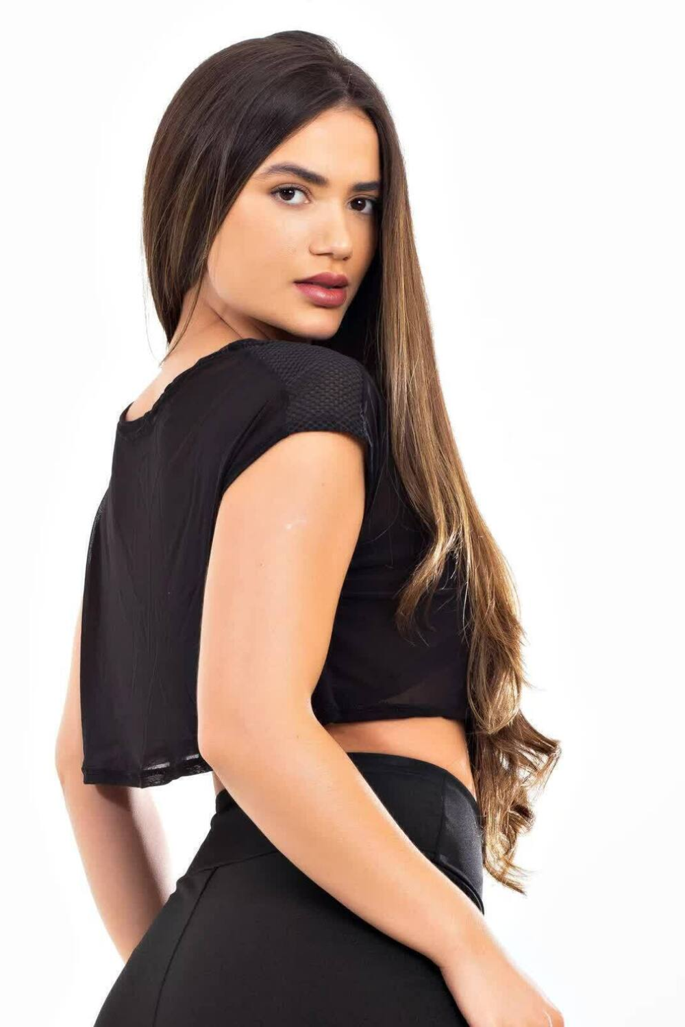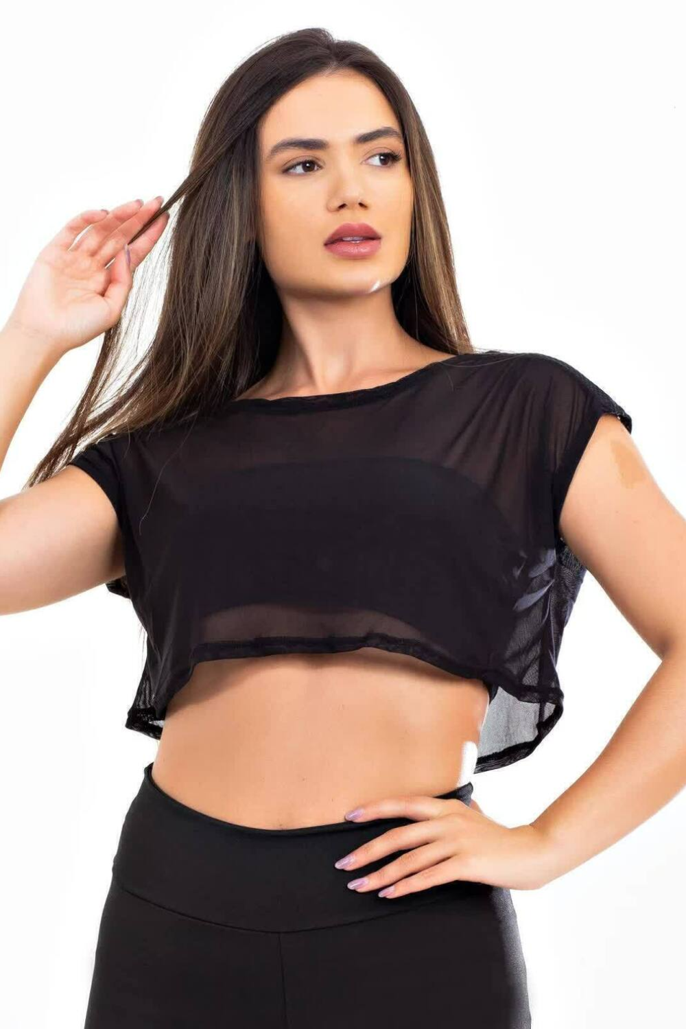 Blusa Transparente Preta Cropped Tela