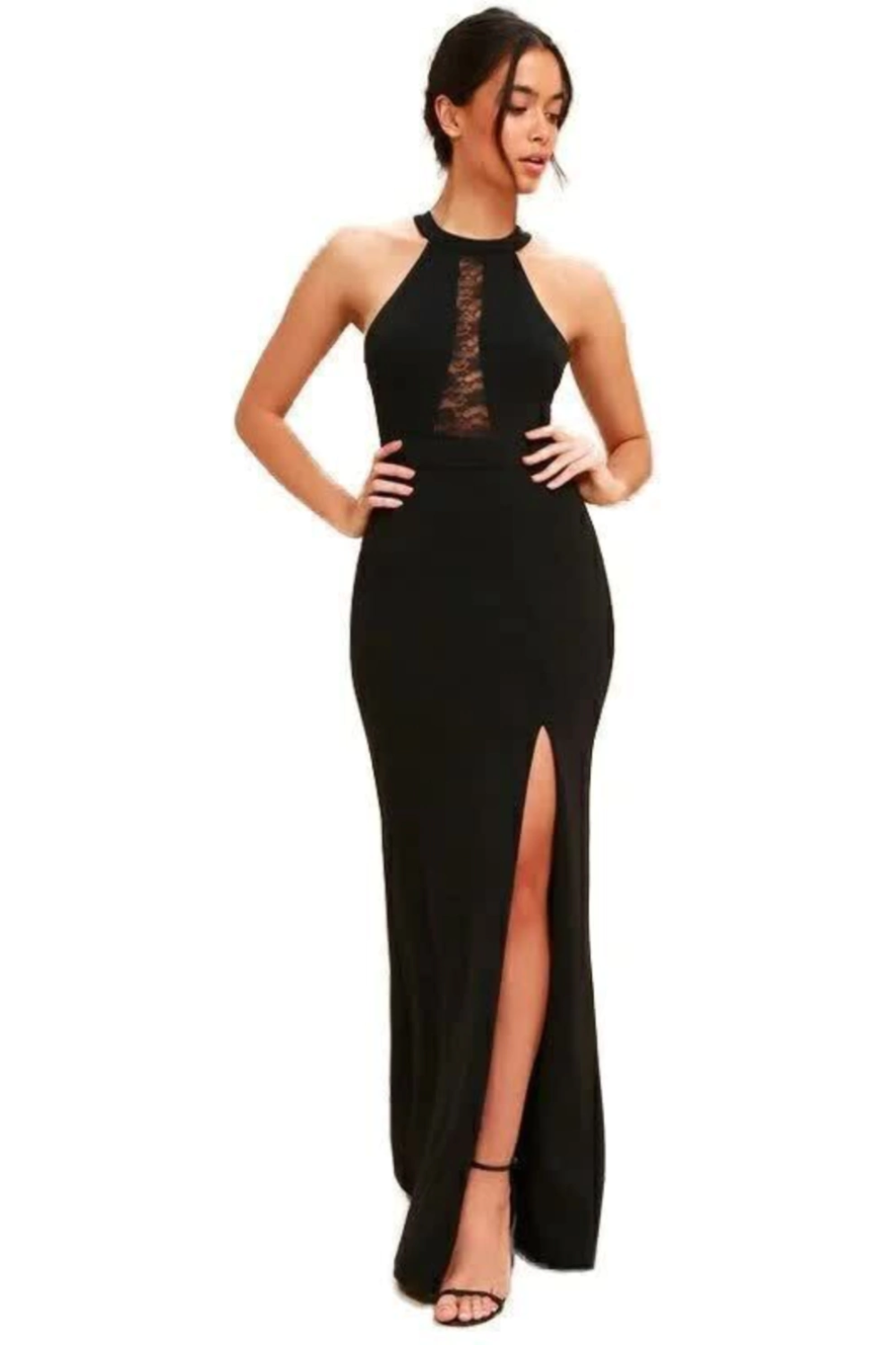 Vestido Fenda Lateral Renda Social Festa Longo